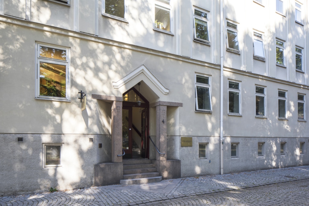 Byggnaden har ett fantastiskt läge mitt i centrala Jönköping med närhet till all tänkbar service samt fina promenadstråk längs vattnet. Fastigheten består av två sammanhängande huskroppar i fyra respektive fem våningsplan. Det ena huset är byggt 1920 och har en gammaldags stil med putsad fasad. Om- och tillbyggnad genomfördes 2008 och en större renovering genomfördes 2025. Det andra huset är byggt 1991 och har renoverats 2013 och 2024.