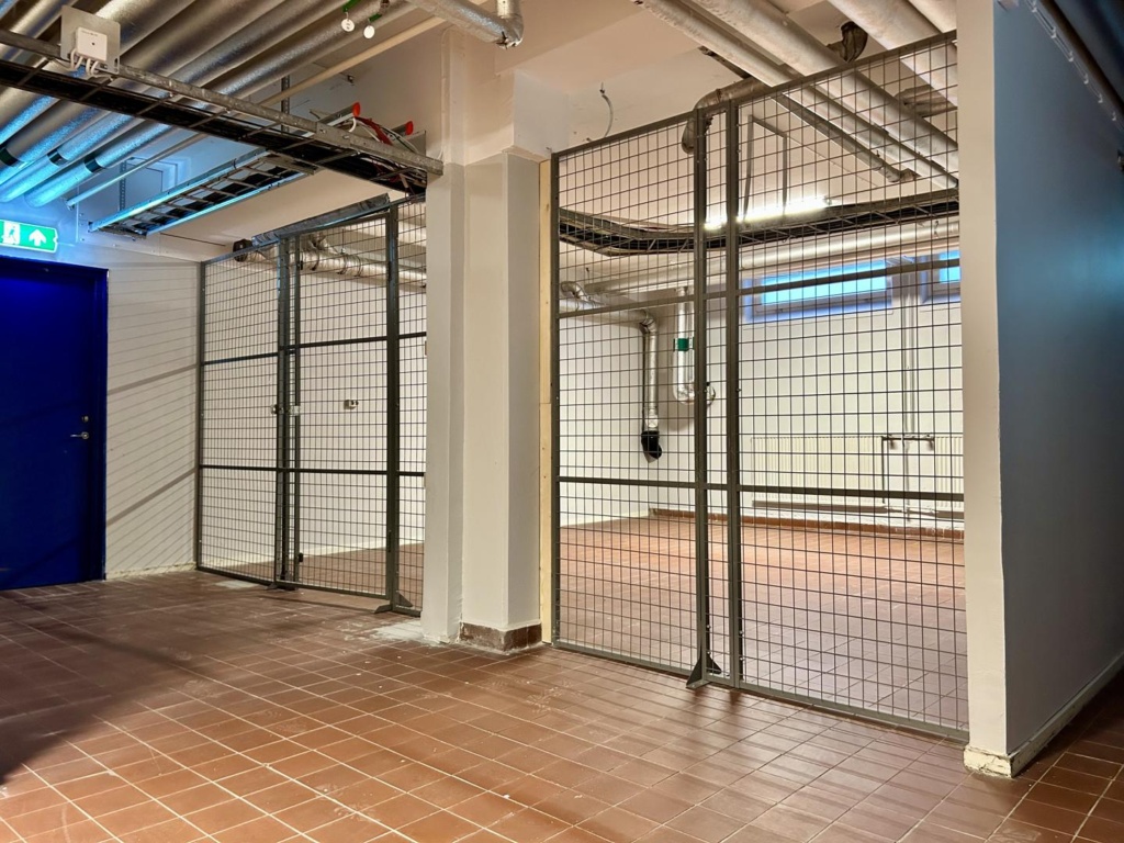 Ett par ytor finns tillgängliga, från cirka 11 kvm till respektive cirka 40 kvm, vilket ger flexibilitet att välja en lösning utifrån aktuellt behov. Förråden är lättillgängliga och lämpar sig väl för effektiv förvaring.
