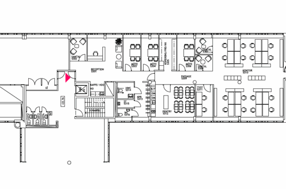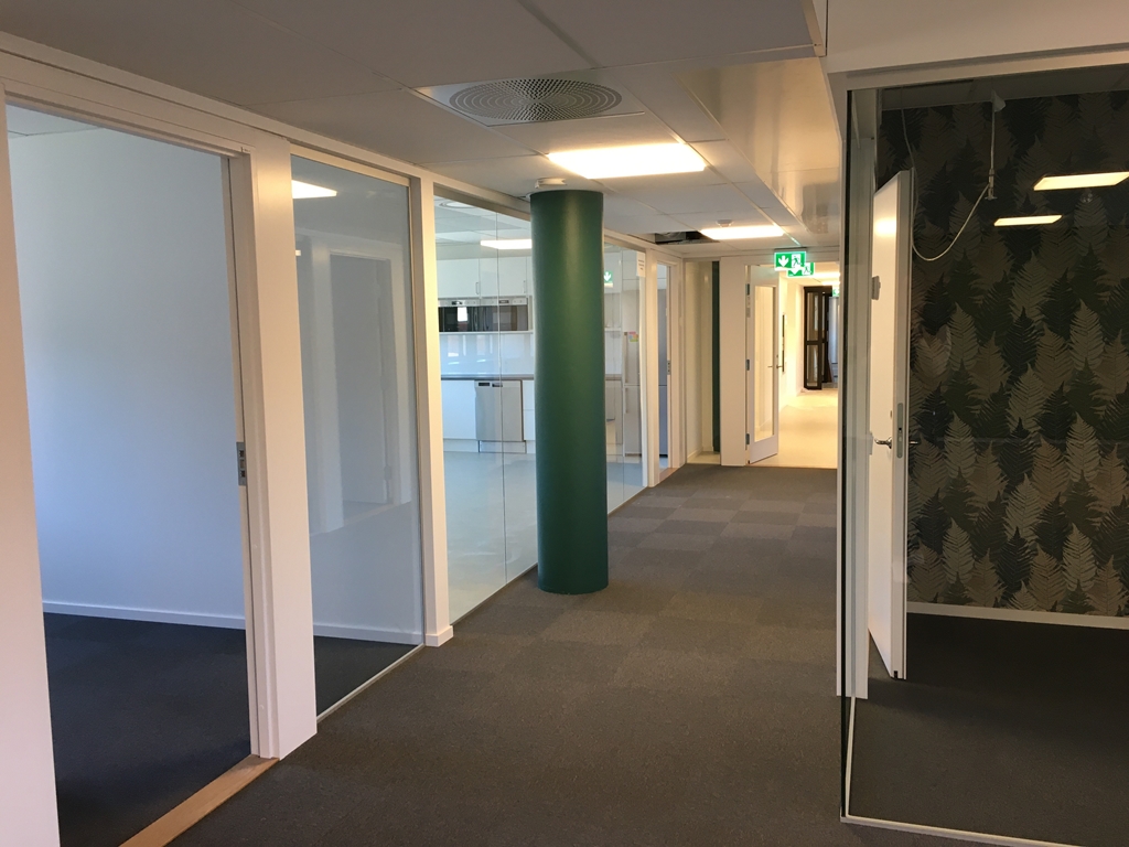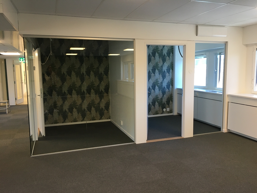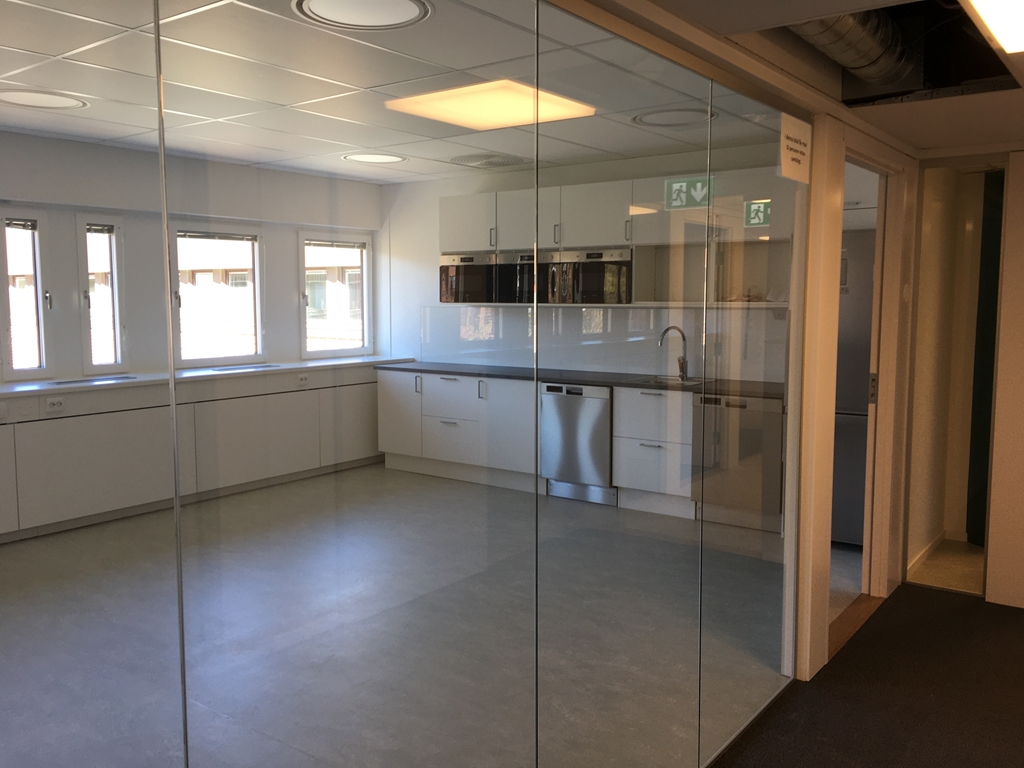 Mycket trevlig och modern kontorslokal i K43. Kontorslandskap för 18-20 personer, tyst kontor för 2 personer, tre mindre samtalsrum, tre mötesrum, reception, lunchrum och wc-grupp.