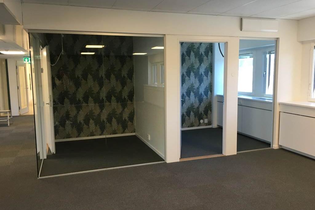 Mycket trevlig och modern kontorslokal i K43. Kontorslandskap för 18-20 personer, tyst kontor för 2 personer, tre mindre samtalsrum, tre mötesrum, reception, lunchrum och wc-grupp.