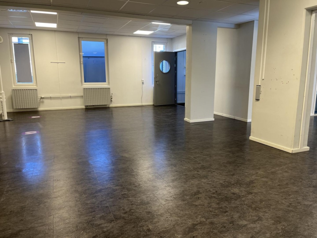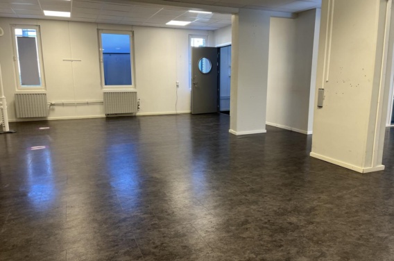 Lokalen ligger i markplan och består i dagsläget bland annat av en stor öppen yta, kök, två toaletter och besöksrum. En lokal med många möjligheter där ni kan skapa en arbetsplats som passar just er verksamhet.