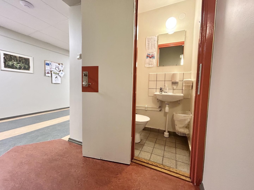 Korridor samt ytterligare en toalett delas med annan hyresgäst i byggnaden. I anslutning till korridoren finns även konferenslokaler med möjlighet att hyra vid behov, vilket ger extra flexibilitet för möten eller tillfälliga behov utöver den egna lokalen.