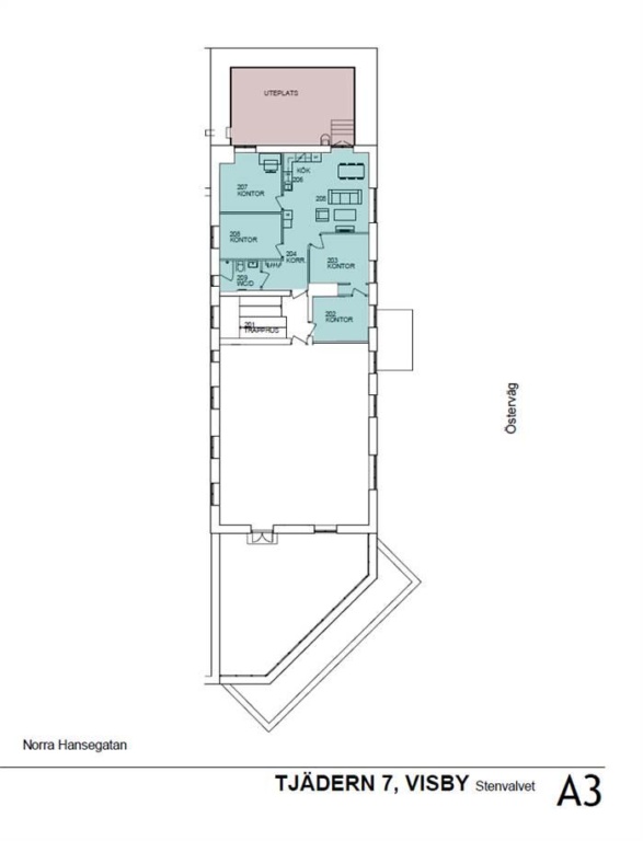 Tjädern 7 är belägen i ett attraktivt läge precis vid Östercentrum som ligger ovanför ringmuren i Visby. Här bedrivs olika typer av verksamheter så som gym, frisör och kontor.